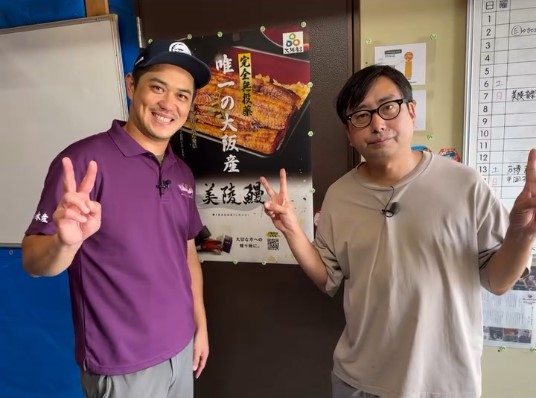 ゲストの《おいでやす小田さん》が養殖場にお越しくださり、美陵鰻を召し上がっていただきました✨